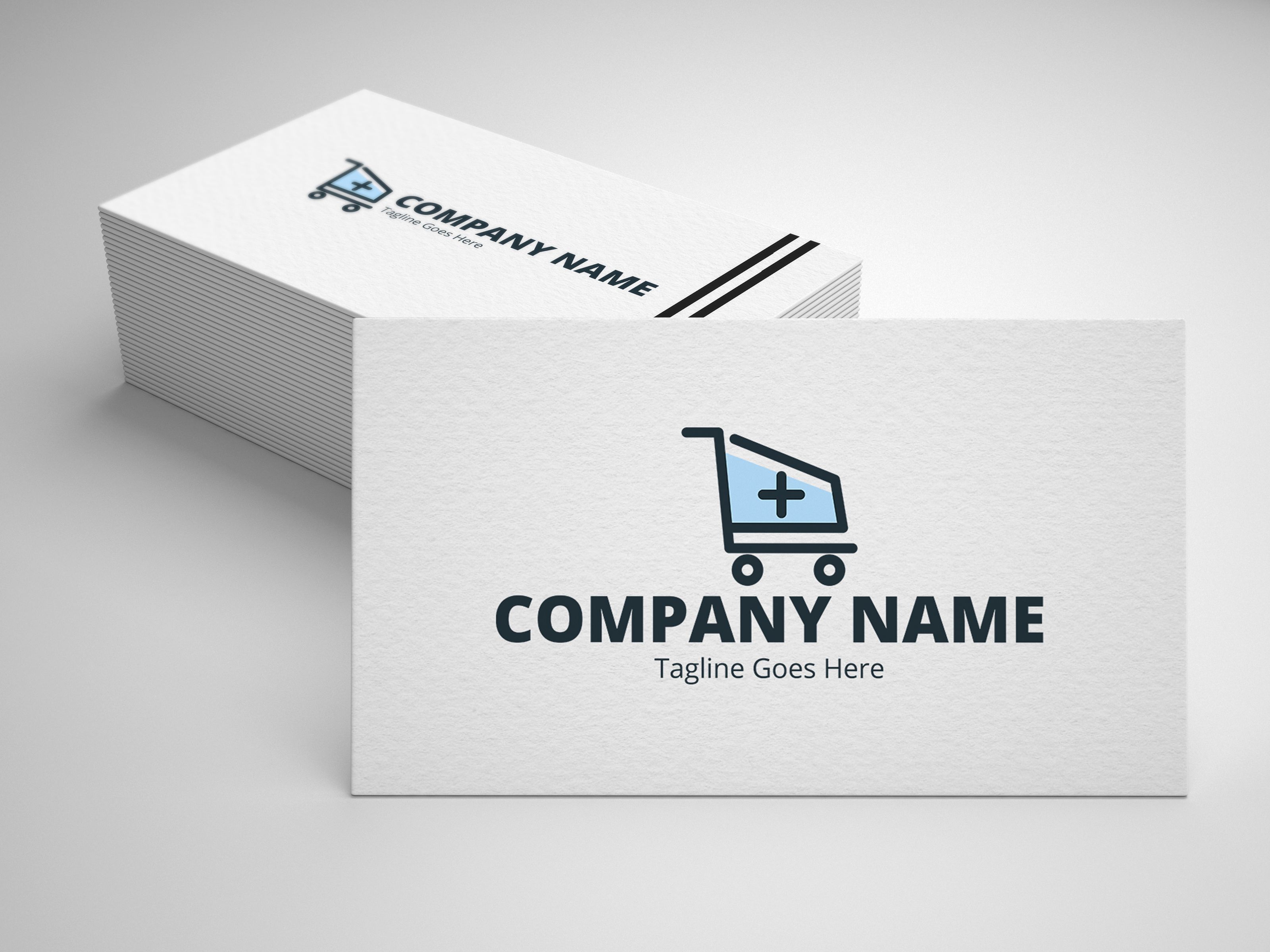 Simple, minimalist and modern logo template design that combines a trolley with a plus sign.