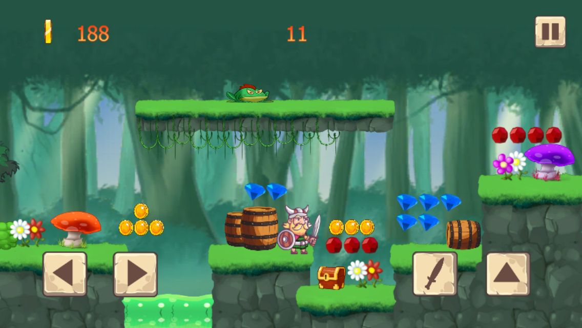 In the world of the Viking Hero, many dangers, enemies, troubles, obstacles, difficult traps and bosses defend Hero's way through the jungle,