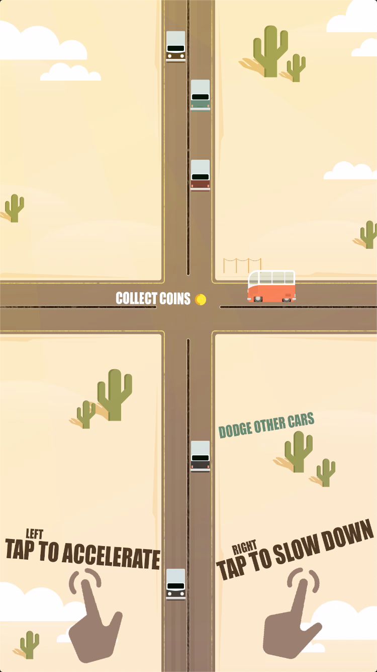 Drive through the crossroad! Tap left for accelerate and right for brake!