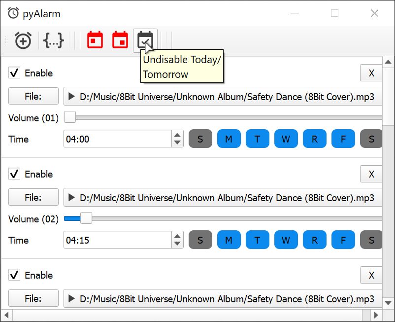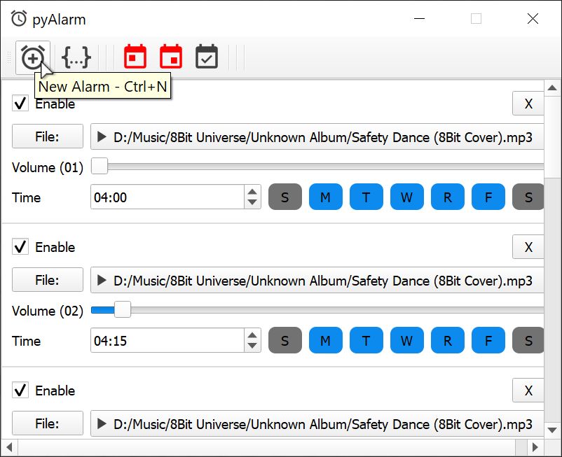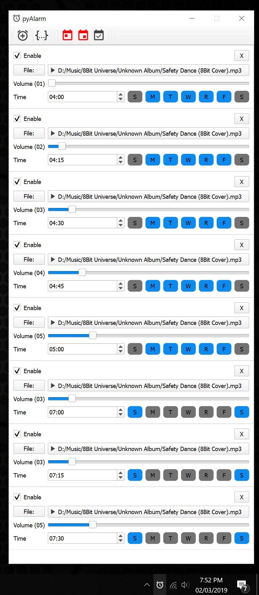 An alarm clock (written in Python, Json) that plays mp3 (and many other file types)