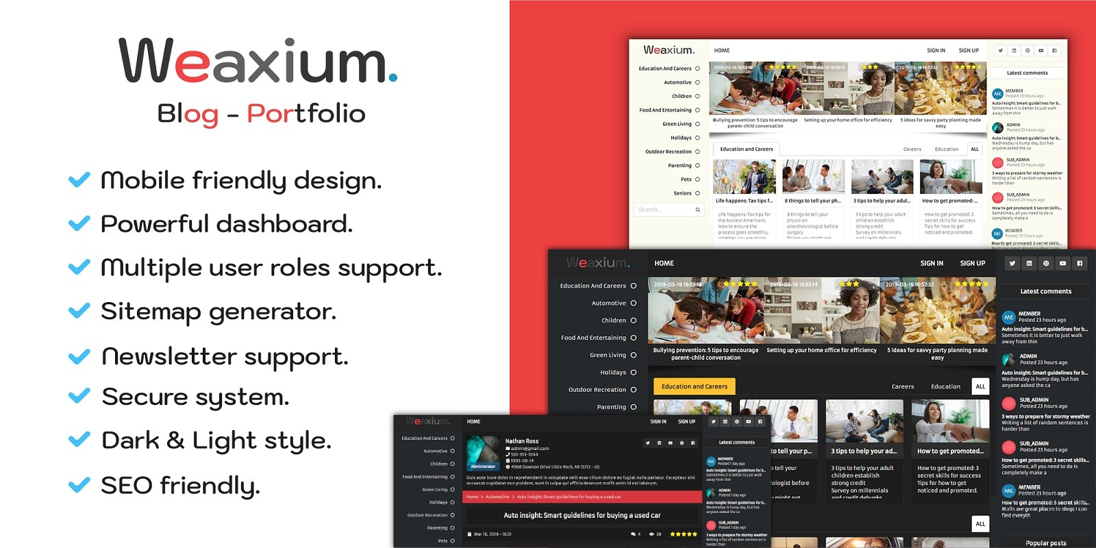 Weaxium is a fully responsive & multi-purpose PHP script, it can be used for a blog, portfolio or anything else