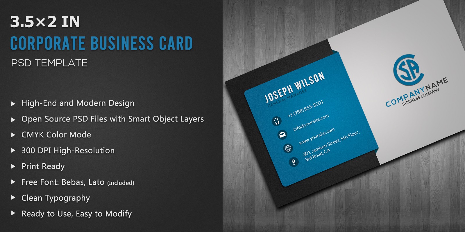 The card comes in two deffirent colors (Green and Blue). All text layers can be changed with one click.