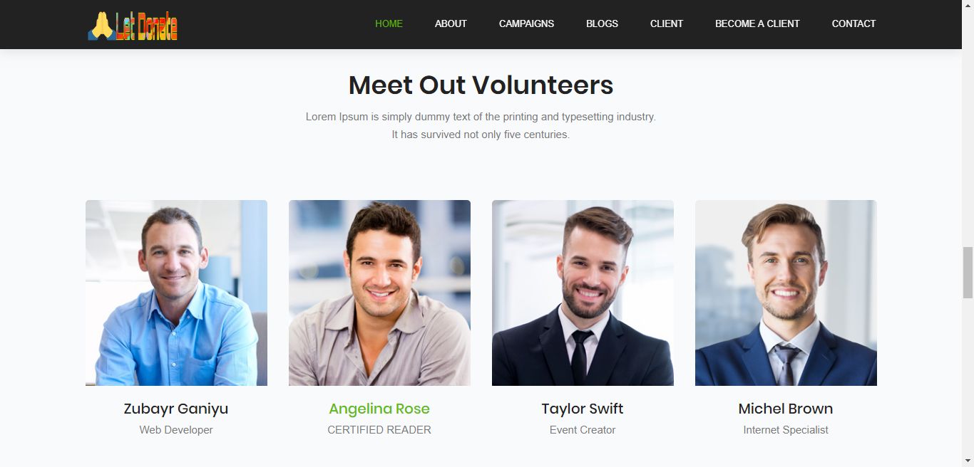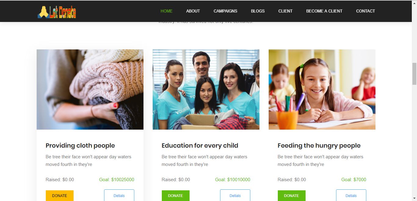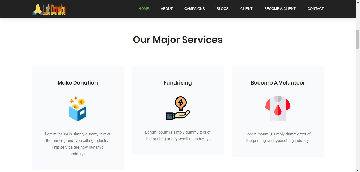 Do not let us use the whole description to discuss all what Charitify is all about please check out the domo version Front page and the Admin panel also see the Client Panel you can use this below details to login base on panels.