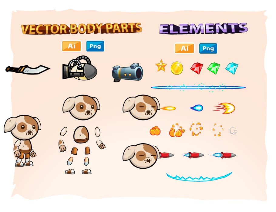 Note: The .AI and .EPS files just contain vector body parts because the animations themselves are done in Spriter.