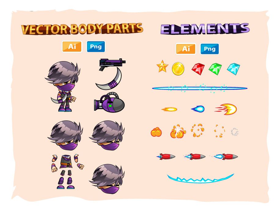 Note: The .AI and .EPS files just contain vector body parts because the animations themselves are done in Spriter.