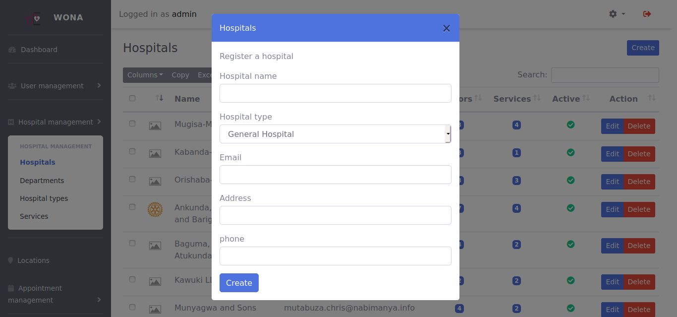 - Dashboard for hospitals