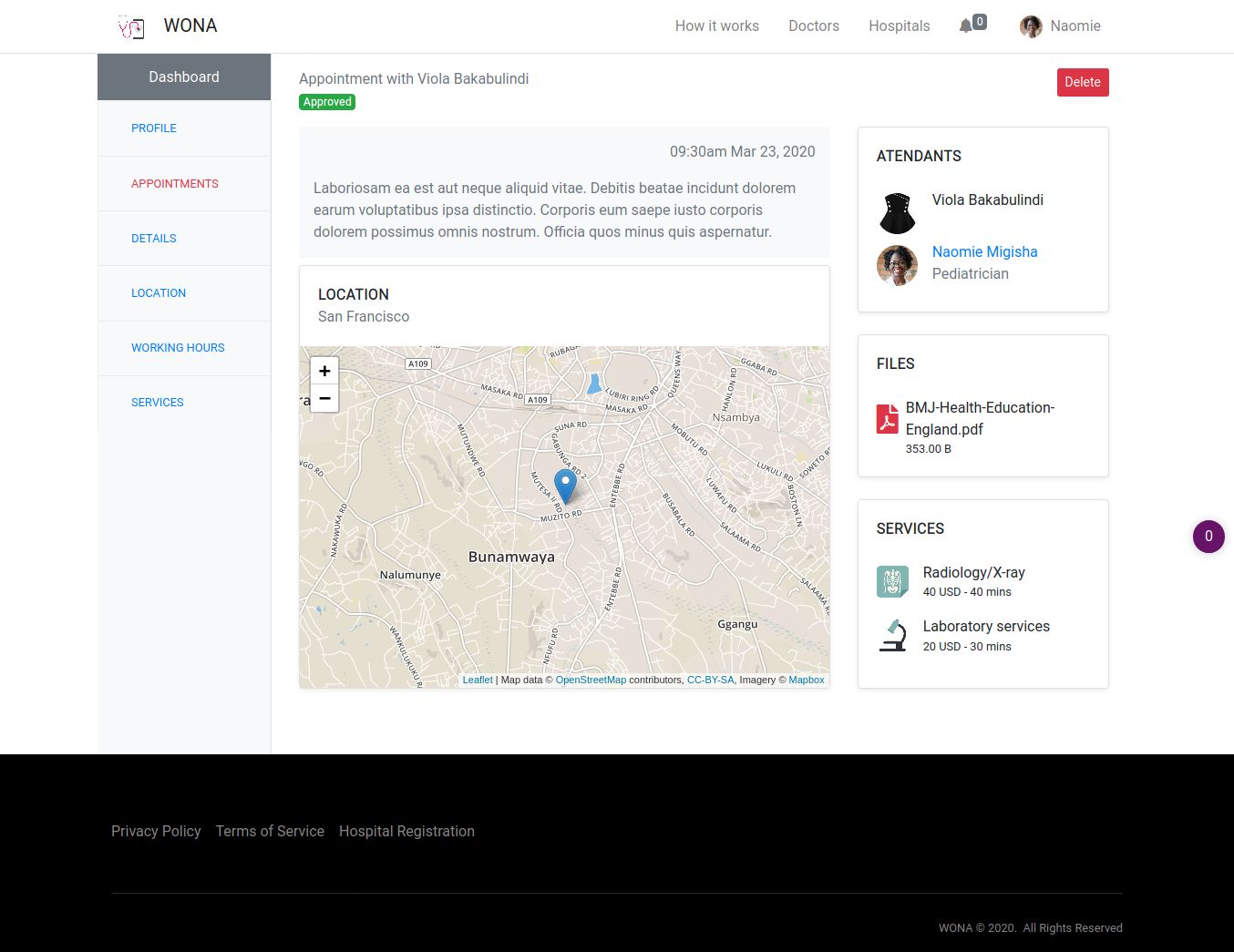 Manage a listing of doctors and hospital from which users can search and book appointments