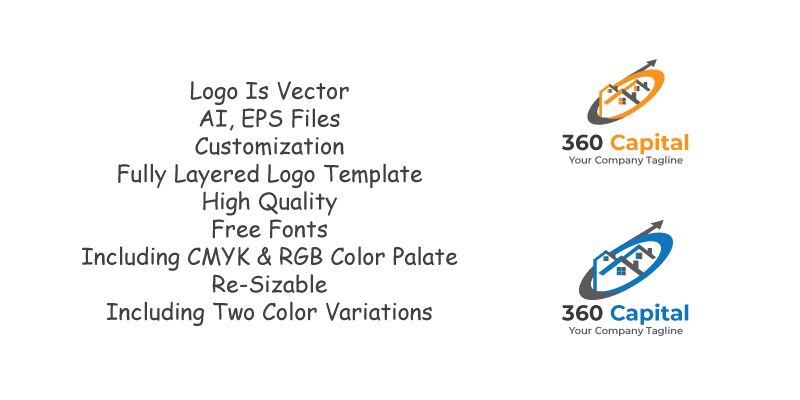 360 Capital logo template suitable for businesses and real estate industry. Easy to edit, change size, color and text. Font link provided inside the 'Read me' file.