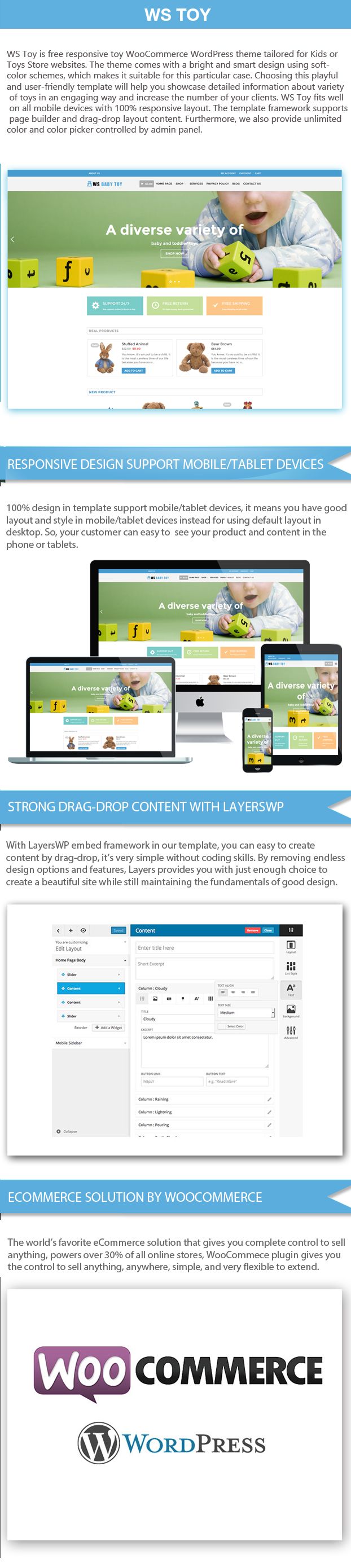 WS Toy is responsive toy WooCommerce WordPress theme tailored for Kids or Toys Store websites.