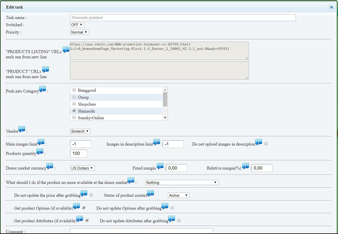 - Ability to set both fixed and/or relative price's margins of all products grabbed by each particular task ( for example, add 10%and $20 more to original price ).