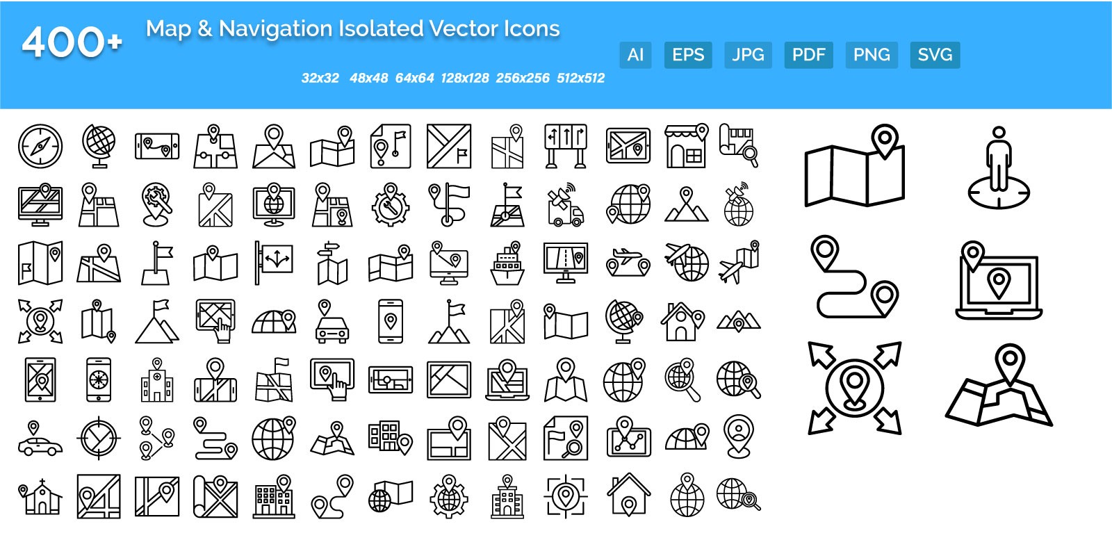 - 48x48, 64x64, 128x128, 256x256, 512x512, PNG Format of every single icon available in this pack.