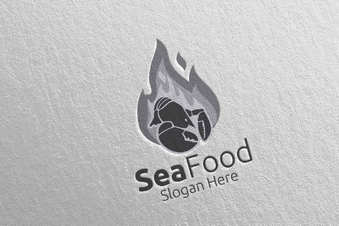 Seafood Logo, Organic Vector Design.for Restaurant or Cafe, fish, crab, shrimp, scallops, squid, octopus, chef, Fork, Spoon Concept Template Features: