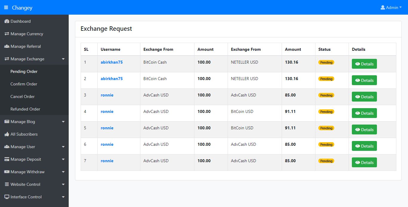 Changey is an Online Dollar Buy Sell Platform made with PHP Laravel. With our script you can create your own website for exchange of electronic currency (Such As: PayPal, Skrill, WebMoney, Payeer, Perfect Money, AdvCash, OKPay, SolidTrust Pay, Payza ETC). Included wonderful and friendly interface for use by the customer and practical admin panel for use in the administration of the site. Its easy to buy sell & exchange currency with our system, its user friendly & work with all device fine. start your own Online Dollar buy sell Platform within just five minutes with our system without any programming knowledge....