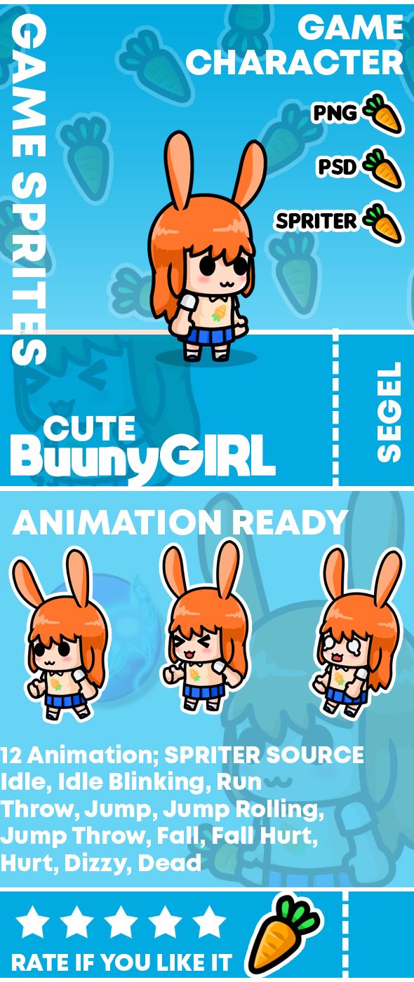 | Tags | android, mobile, 2d, Animal, cute, runner, running, character, sprite sheet, chibi, game asset, tiny, Bunny, rabbit, sprite, spriter, platfrom, Anime, carrot |