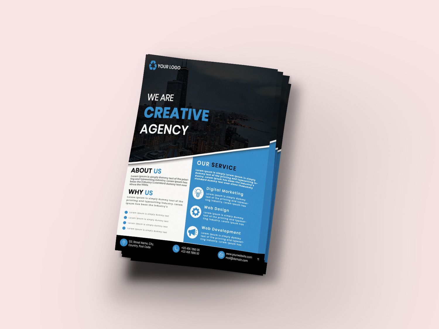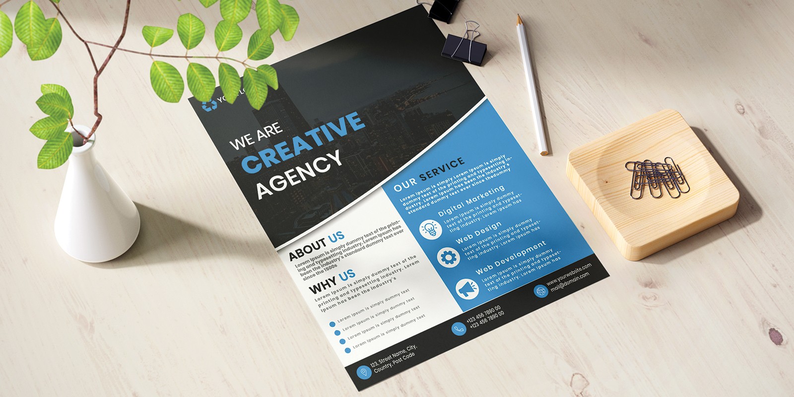 This is a Corporate Flyer Design. This template download contains 1Â PSD files, which are 300 dpi, CMYK files. All main elements are easily editable and customizable.