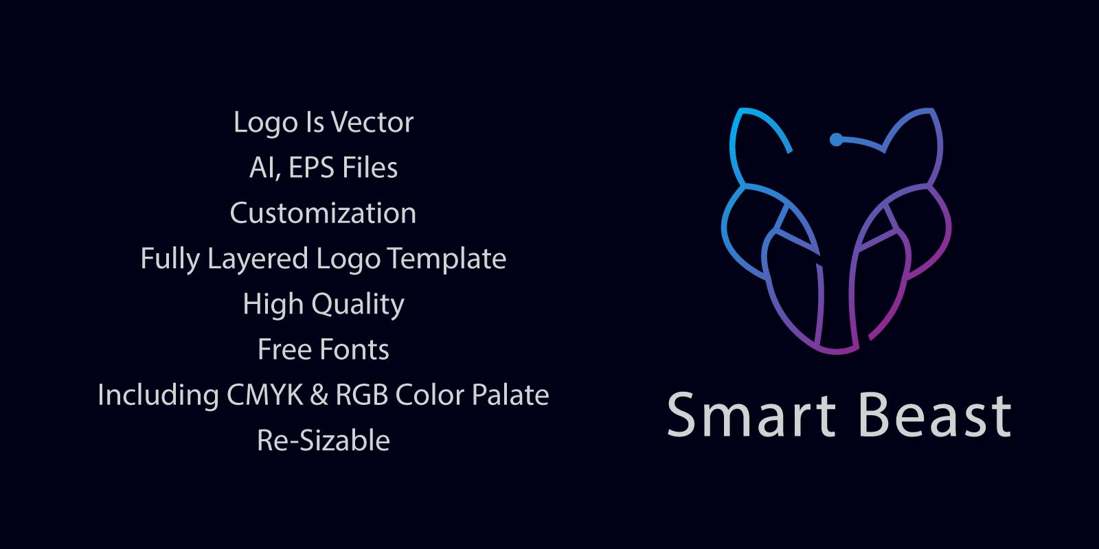 Smart Wolf logo template suitable for businesses and product. Easy to edit, change size, color and text. Font link provided inside the 'Read me' file.