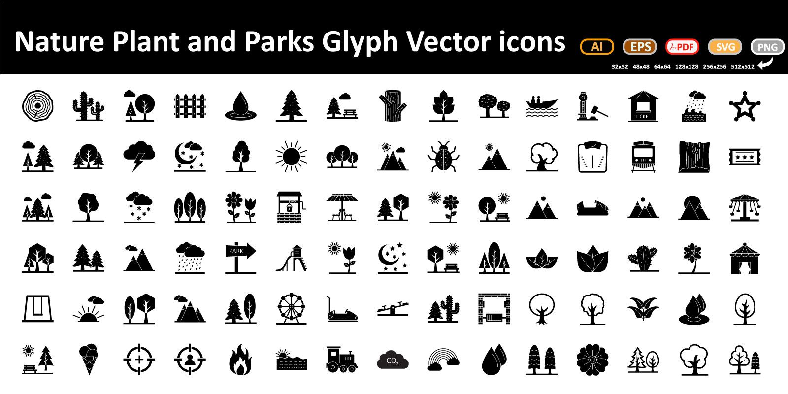 Go green and be eco friendly with these brand new nature, park, plants and tree icons vector set. You will love using these vector