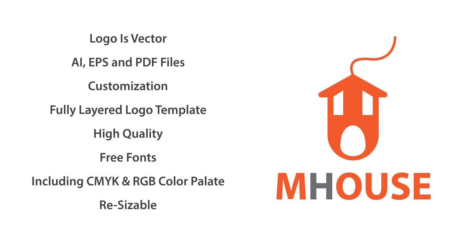 mHouse logo template suitable for businesses and product. Easy to edit, change size, color and text. Font link provided inside the 'Read me' file.