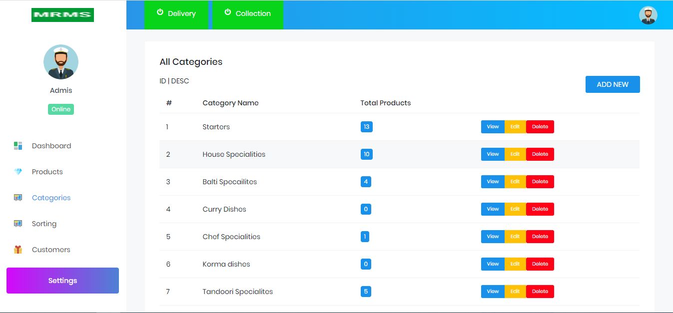 - Manage Categories ADD, EDIT, DELETE