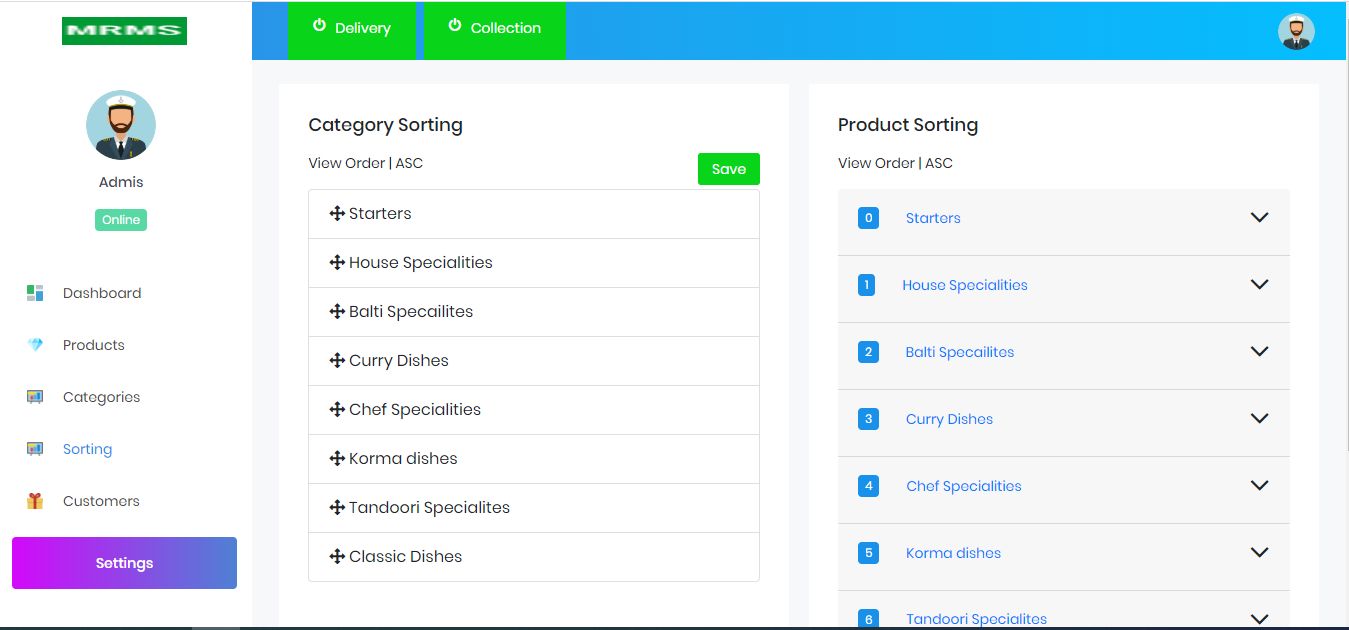 - Categories Sorting