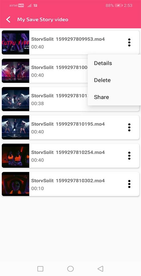 Video Splitter - story cutter is an awesome tool that allows you to select videos of any length and convert them into 10 second segments that can then be uploaded to Instagram, Snapchat, WhatsApp or Facebook stories.