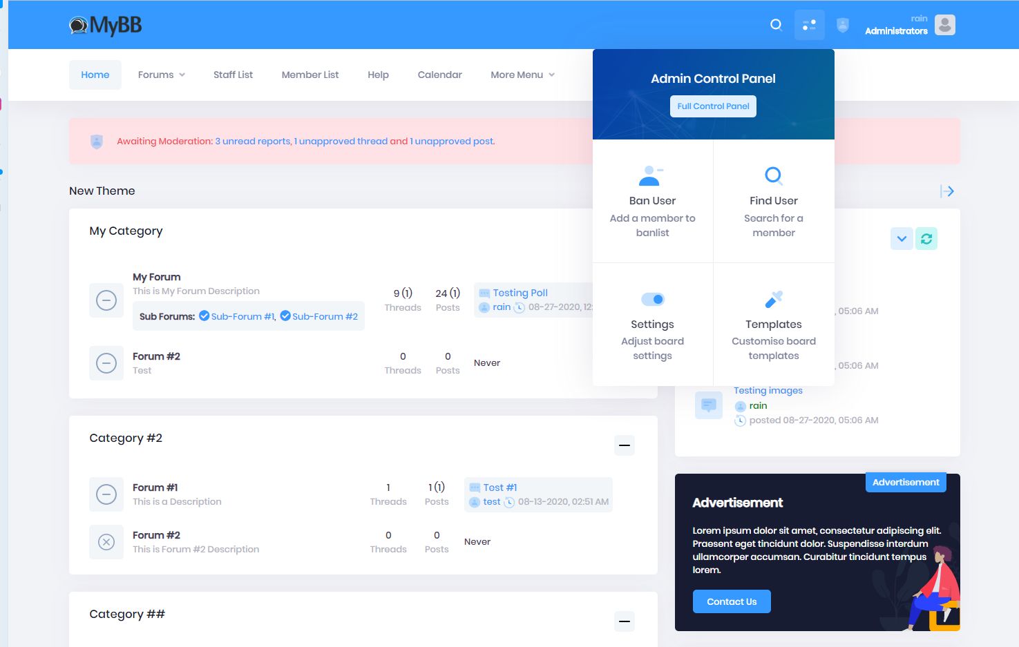 As of today, it could be safely said that this theme and design are the most advanced, comprehensive personal themes I have created. They entail codes that are up to all standards; I have been working on said project for a considerably long amount of time in hopes of presenting it to my university. The project was initially established and created using angular 9. However, I decided to convert it into MyBB form. Moreover, it contains a near endless assortment of components, such as buttons, inputs, forms, widgets, tables and several other elemets that could be included in any project. The design is highly responsive and adaptable to almost every device and every size