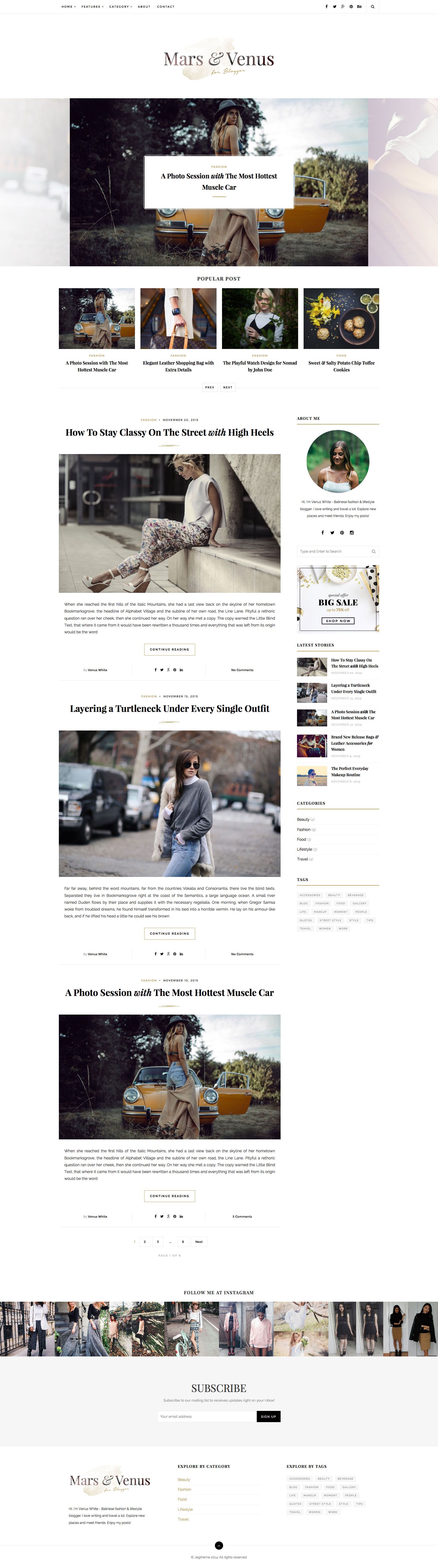 Mars and Venus are well suited for travel blog, personal blog, adventure blog, fashion blog, lifestyle blog, food blog,