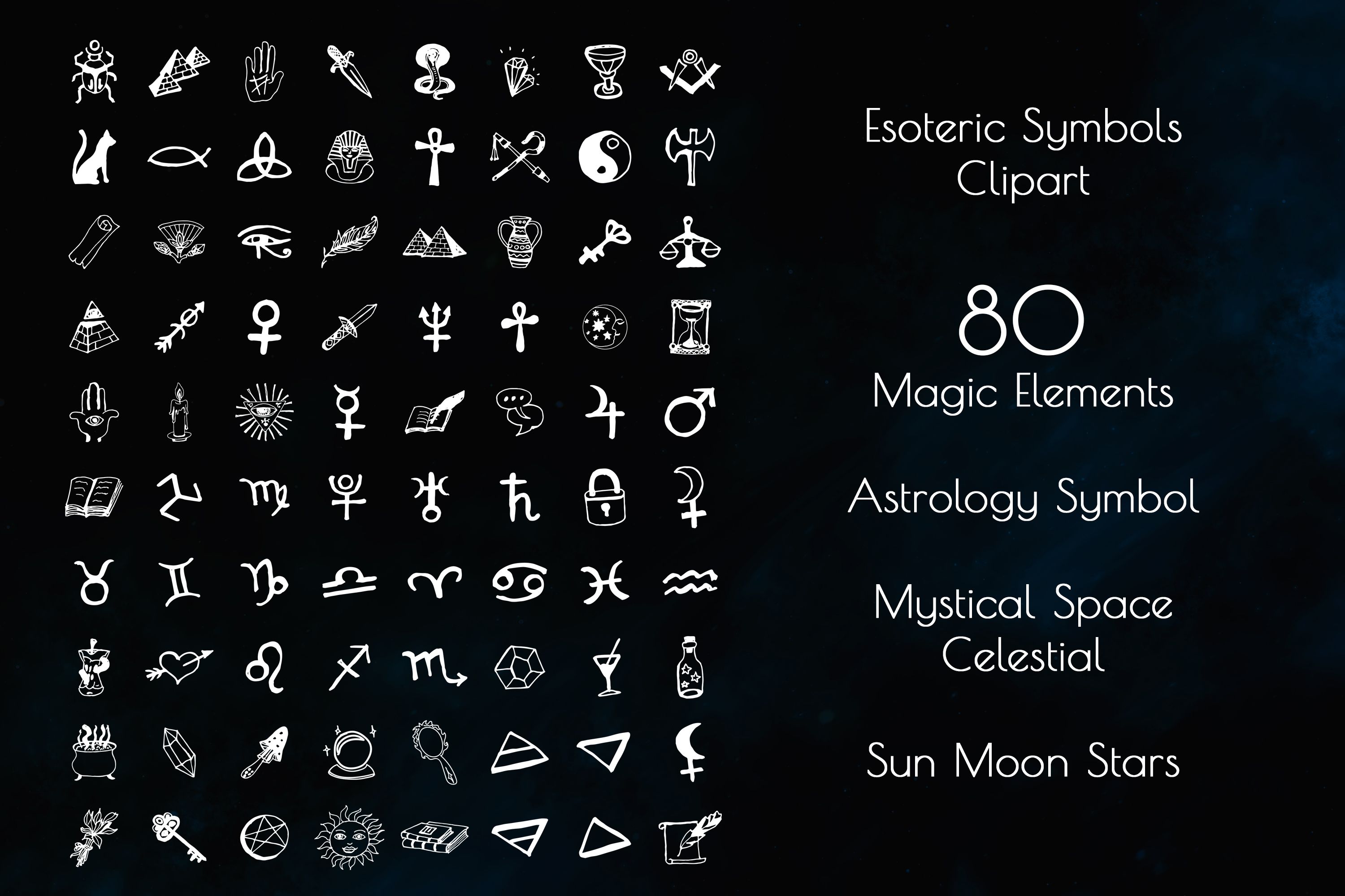 Esoteric Symbols Clipart. Spiritual Sacred Magic Elements Astrology Symbol Egyptian ethnic symbols. Mystical Space Celestial Sun
