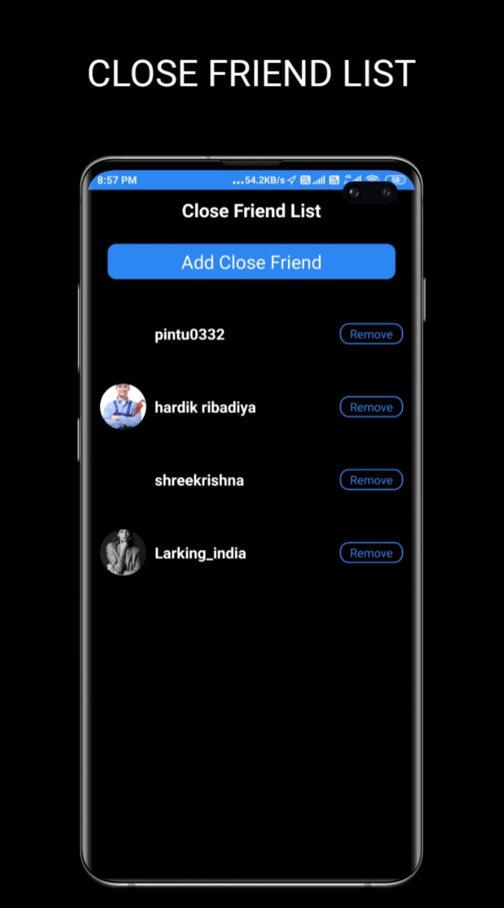 - Close friends list.