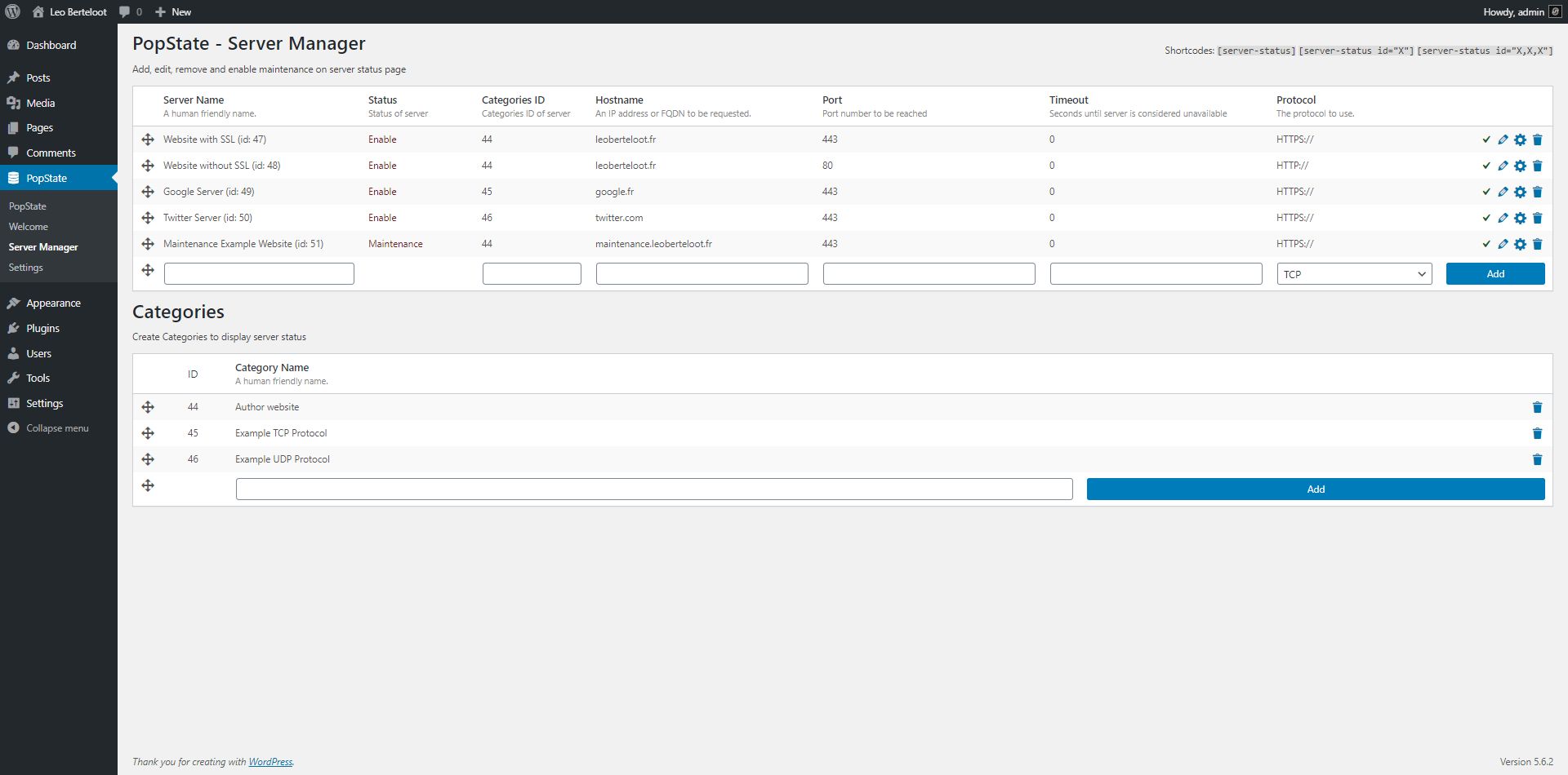 With this plugin, you can share to your customer the status of your favorite servers and display when a server has a maintenance or a problem.