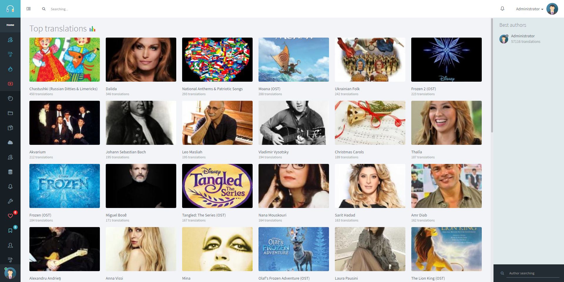 A modern, fast and convenient portal management system with translations of song lyrics.