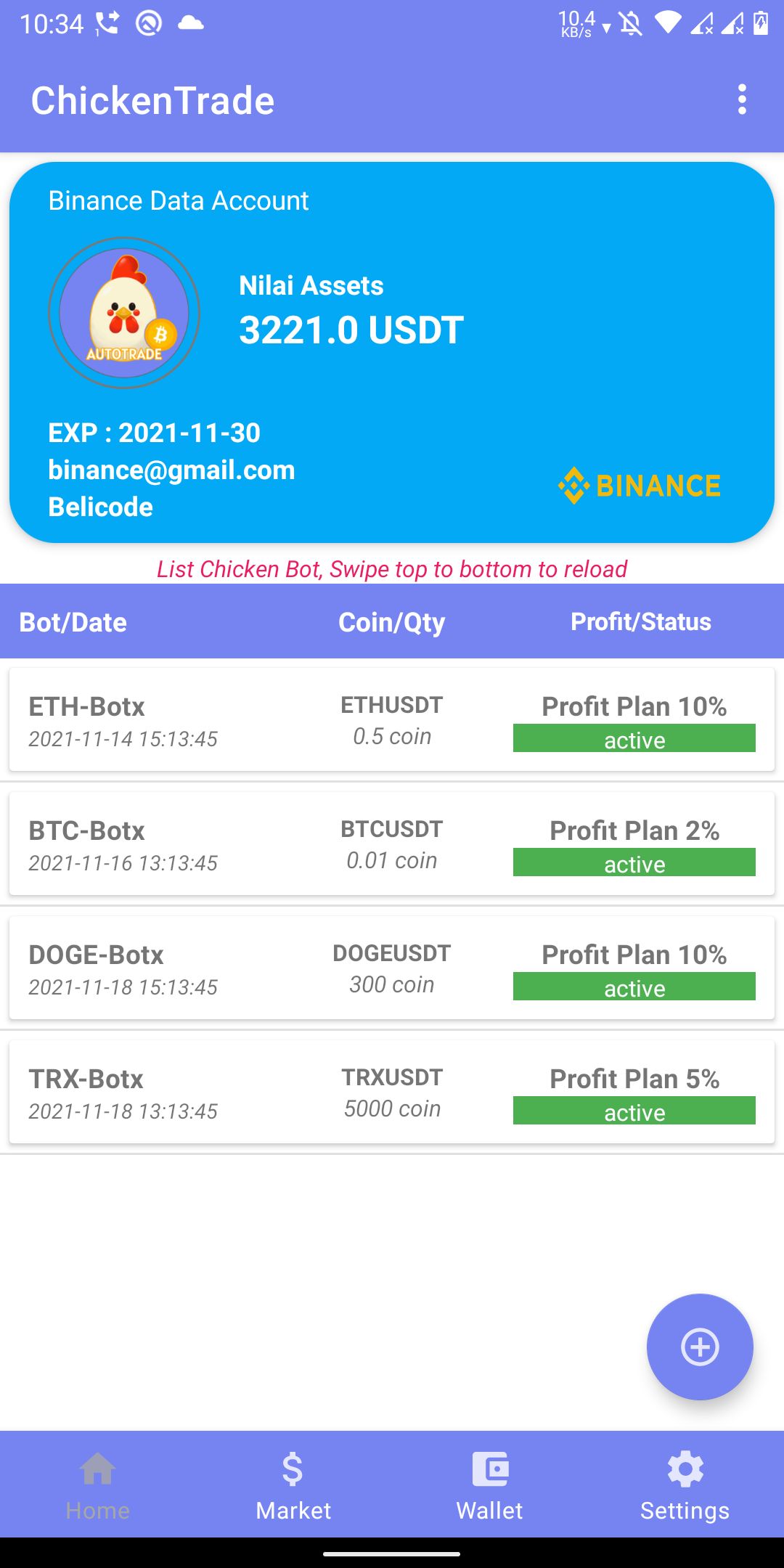 Chicken Trade can be used for market binance, this application is an automatic trading robot made from pure android studio java, for web admin using PHP and html code.the member system is based on the expiration date, which you can manage yourself. using the latest binance API and longtime support.