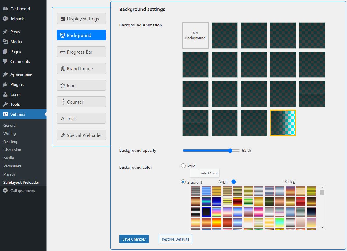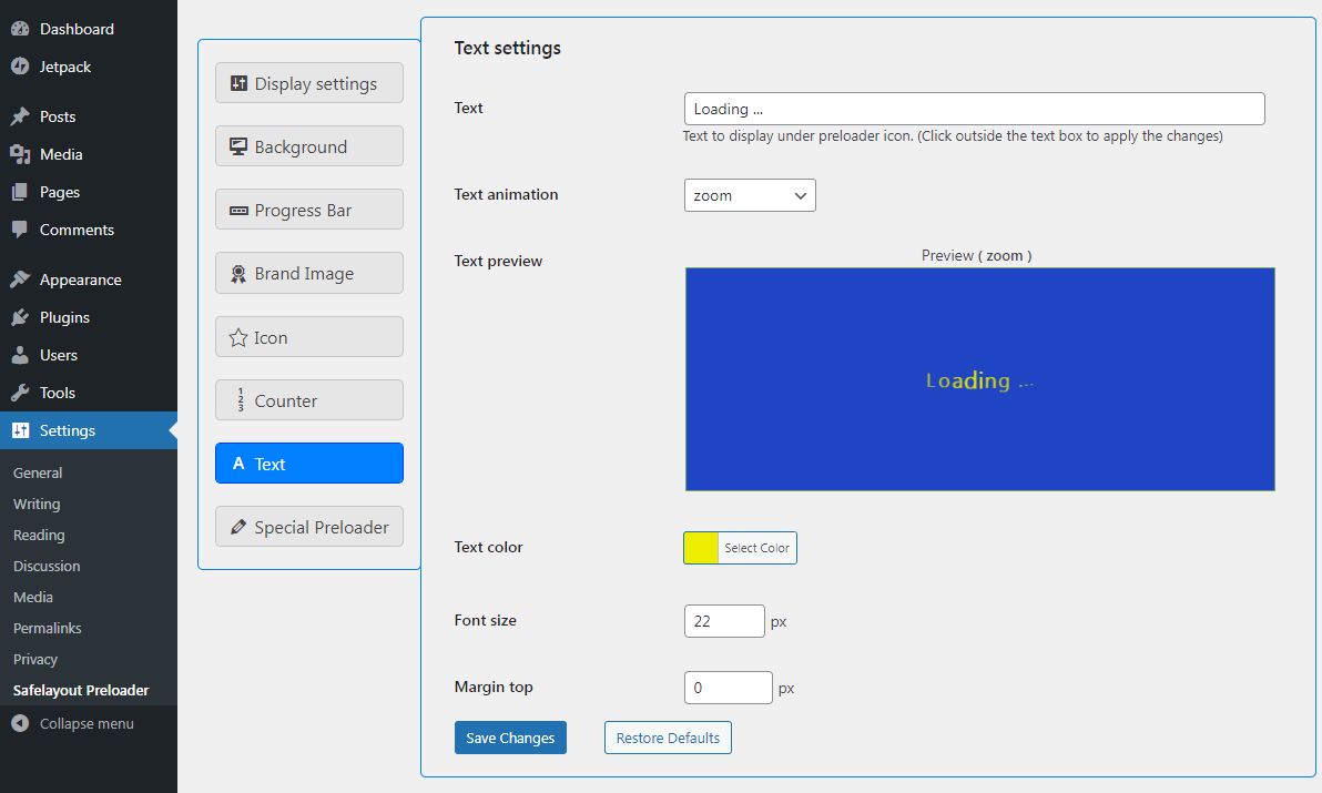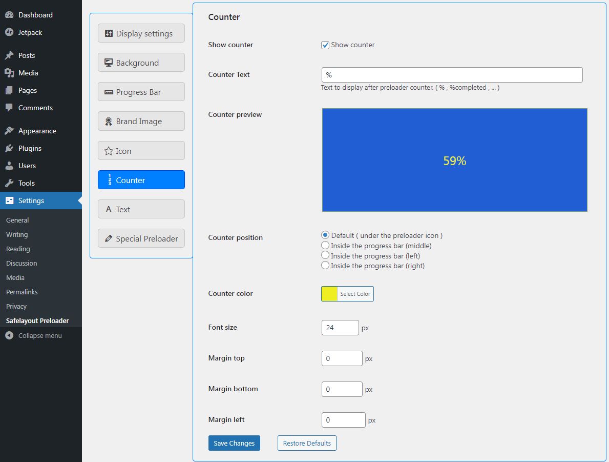 Use the Settings -> **Safelayout Preloader** to configure the plugin.