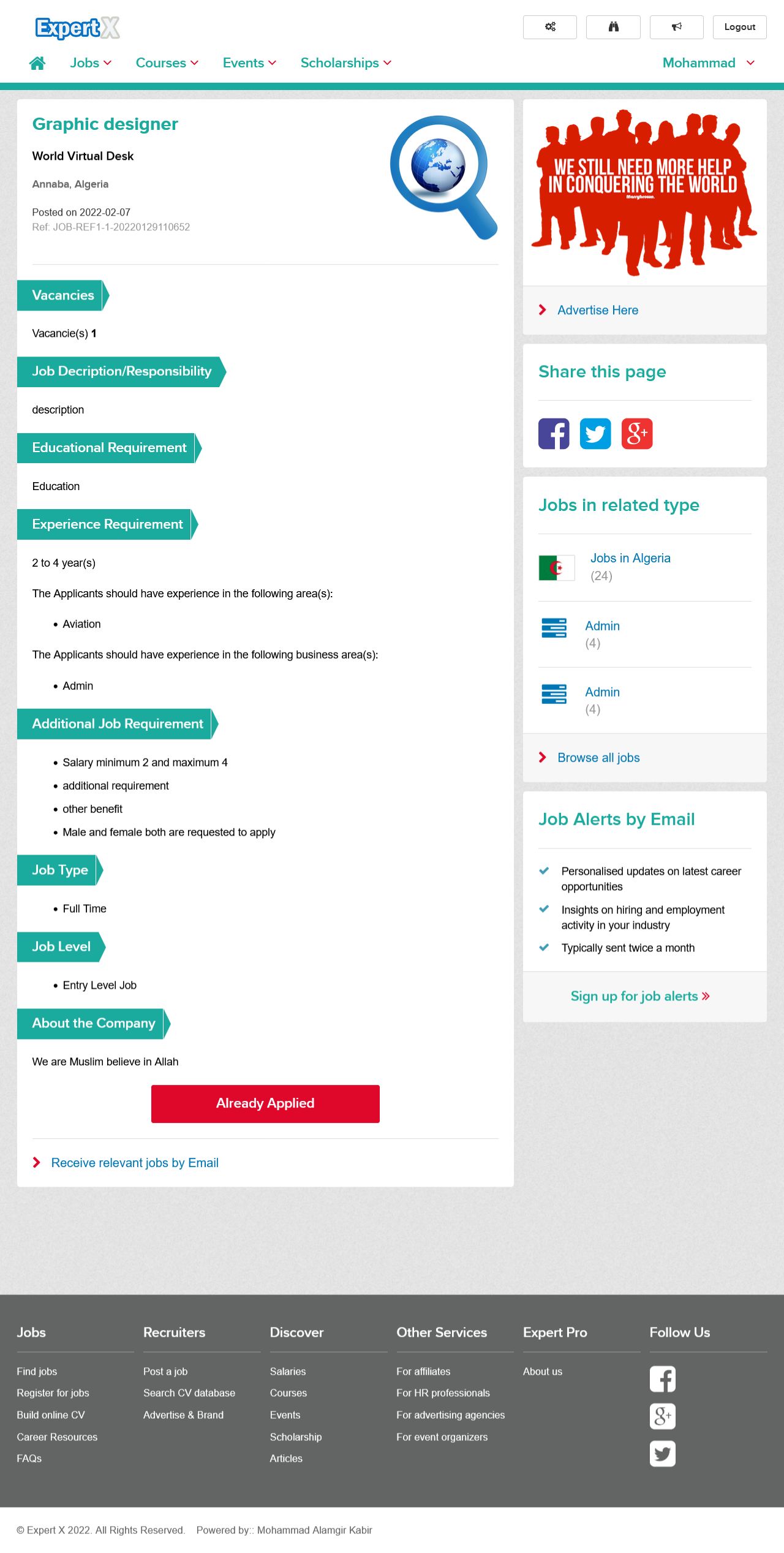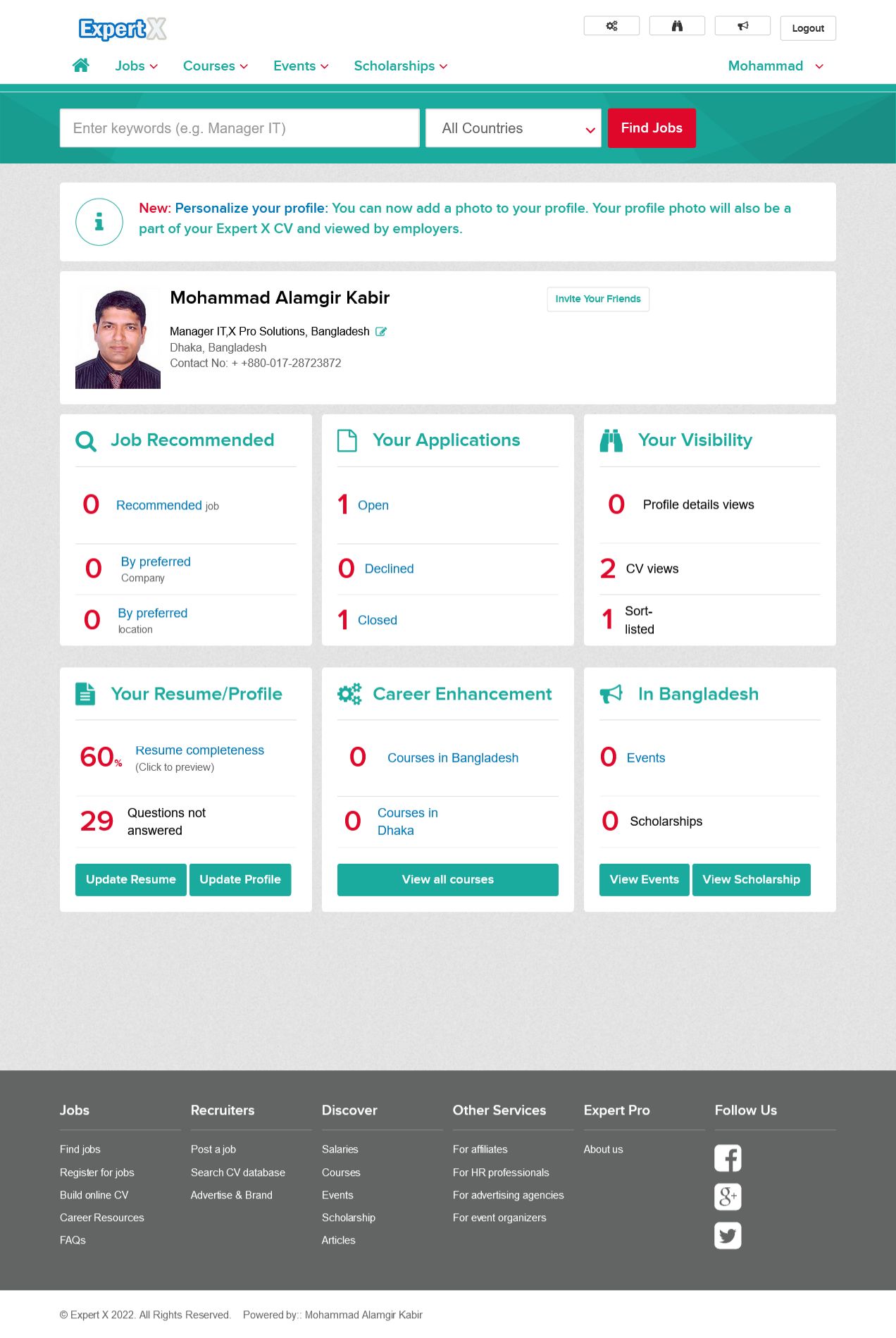 Expert XÂ is well organized Job Board System. With Expert X you can also manage courses, events and scholarships. Expert X is crafted with thorough understanding of the business to connect employers and candidates, universities and students, courses and learners, and events and participants. It has highly advanced features, powerful functions and useful services for users. Easy to use and customize, friendly with users, seekers. Employers and Candidates feel easy and convenient to sign up, login to find jobs, post jobs, job details, manage their profiles, resume, applications from Dashboard.