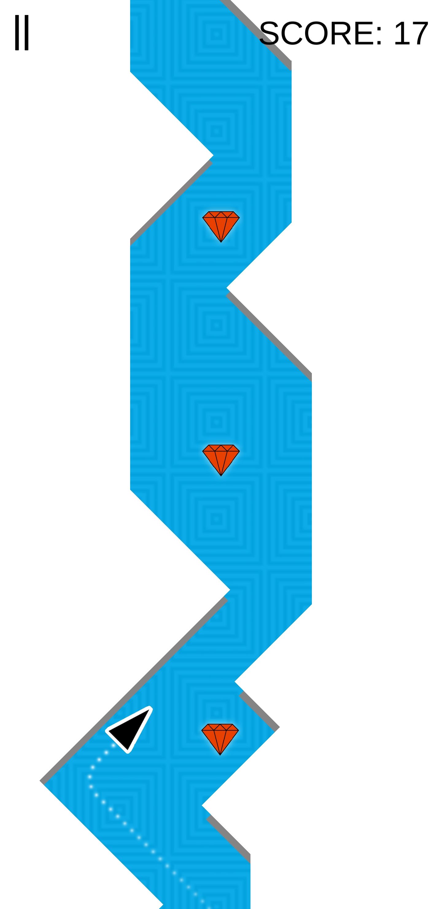 Move the arrow without hitting the walls. As the game progresses the arrow begins to move faster and faster. Your goal is to score as much as you can. Collect the gems and use them to unlock new items in the shop menu.