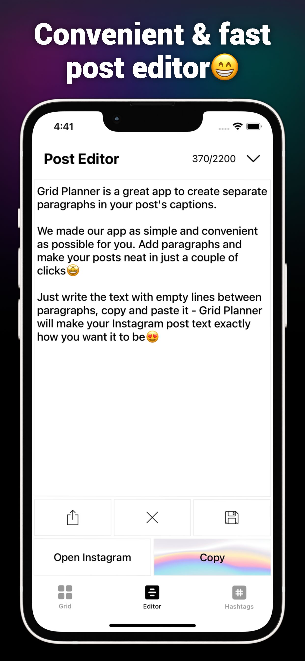 We made our app as simple and convenient as possible for you. So, you can add paragraphs and make your posts neat in just a couple of clicks!