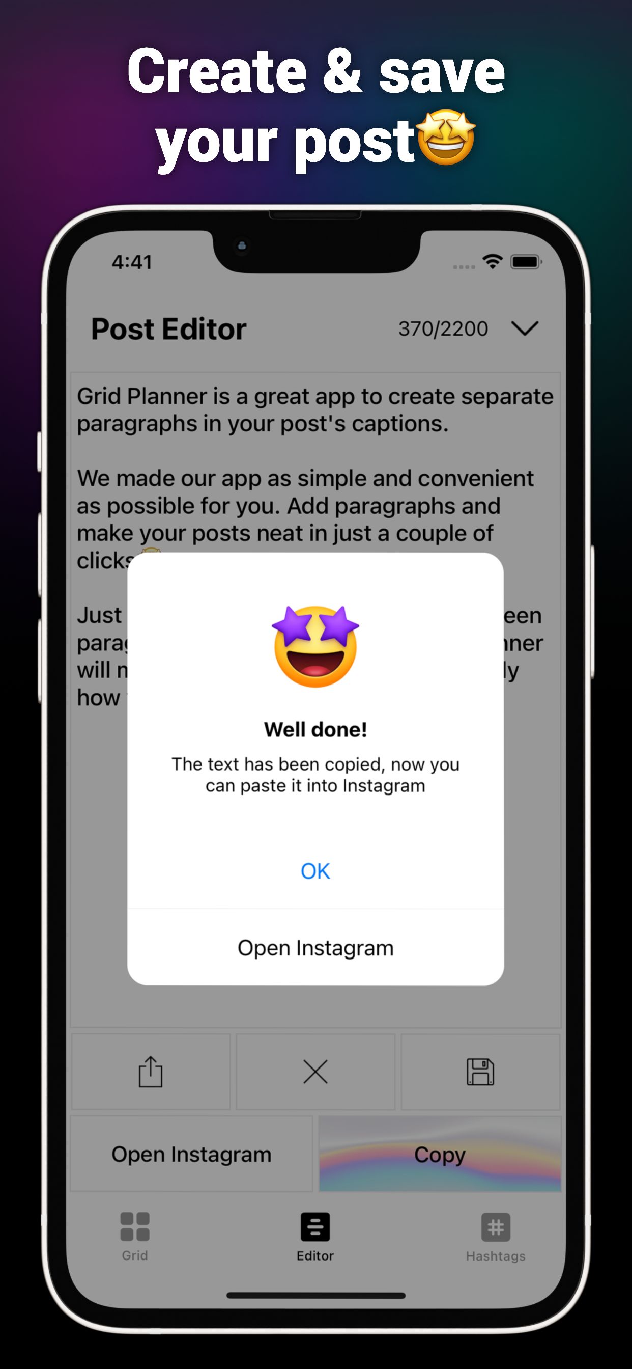 Grid is the only app you'll ever need to plan your instagram feed, see trending hashtags and create amazing captions.