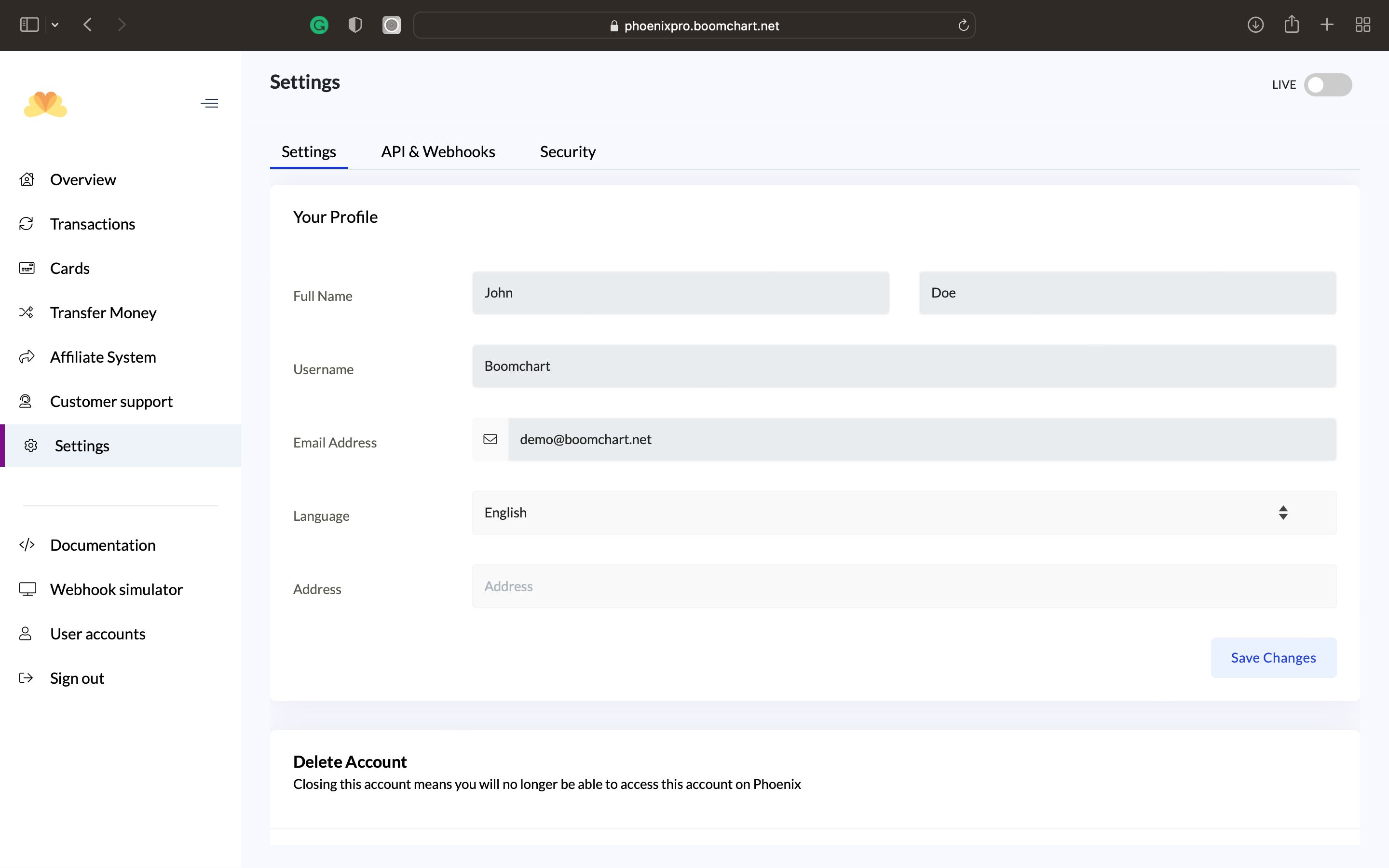 Admin URL:Â https://phoenixpro.boomchart.net/admin