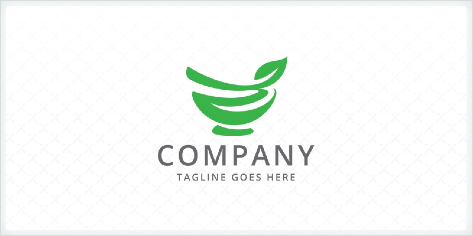 The logo incorporating green bowl and leaf merged together to form a unique symbol.Home / Graphics / Logos / Restaurant