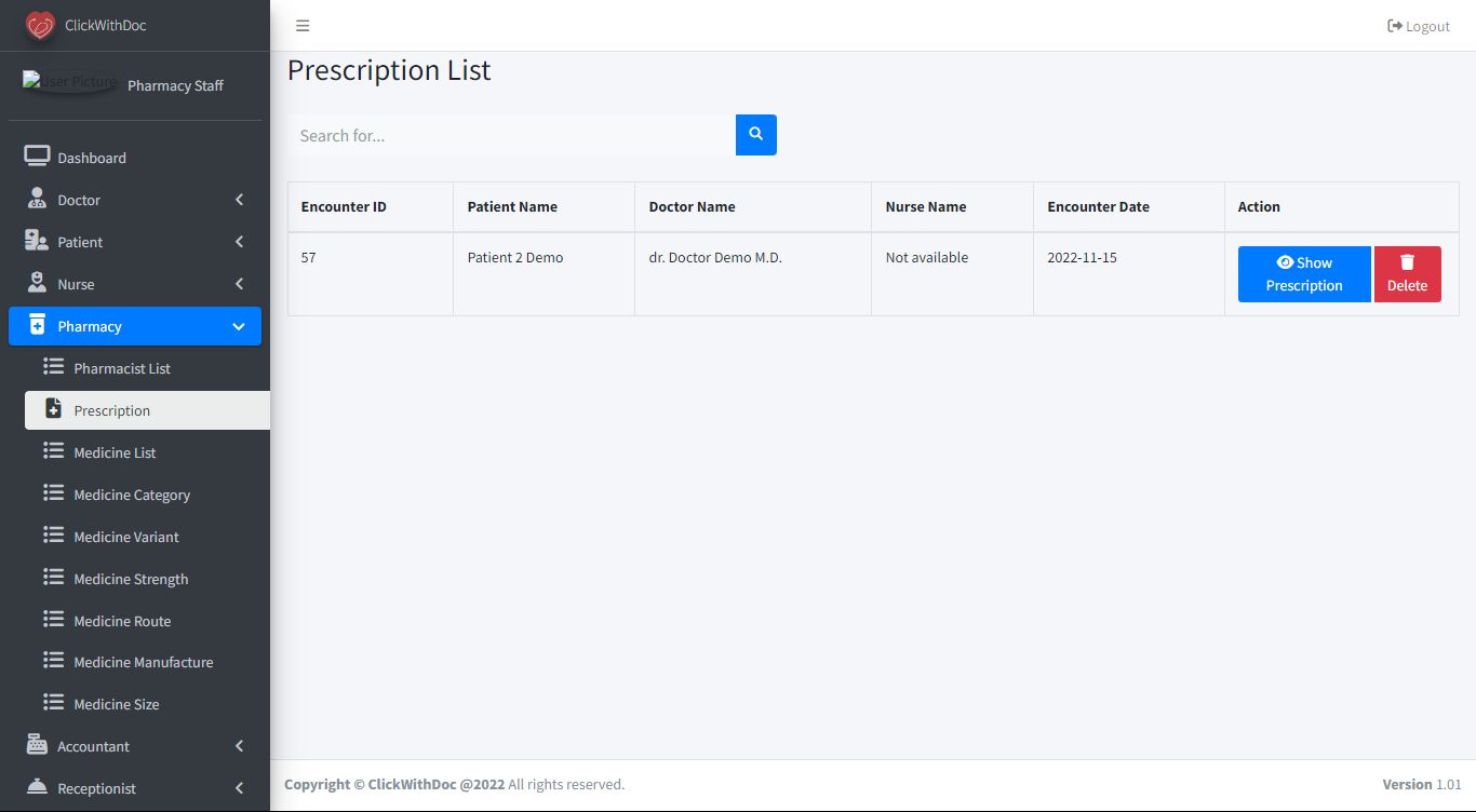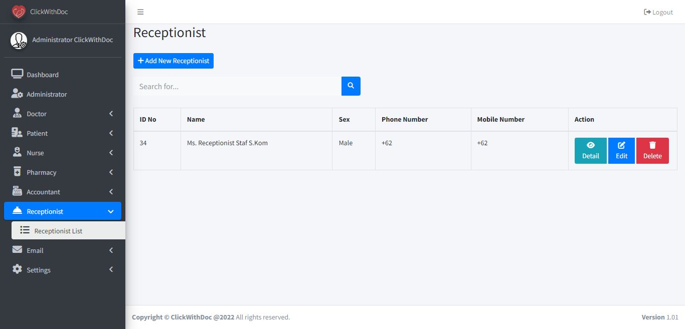 ClickWithDoc is the clinic management system that provide simultan process from patient registration to patient invoice. Patient can doing self registration before they make appointment with desired doctor. Doctor make appointment approval and continue doing examination to then write down the diagnosis and make a prescription. Pharmacist preparing the medicine according to patient prescription and at the end accountant receive payment from patient for paying medicine and doctor fee for treatment.