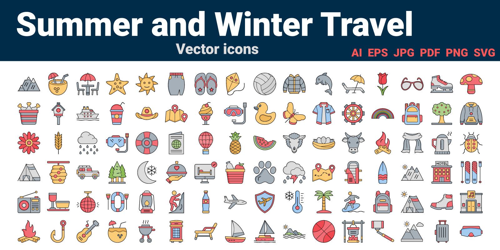 Winter and Summer Travel Icons PackWinter and Summer Travel Icons Pack