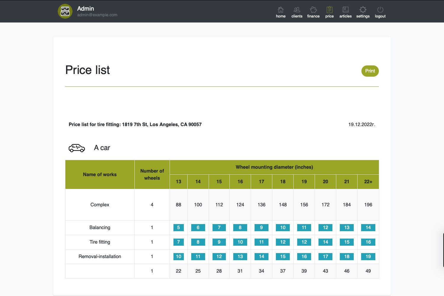 My wheel center - online booking and support - Allows you to create a website for your tire repair shop with the ability to Online booking, notifications for employees and administrators in Telegram Bot, with the possibility of making revenue and expenses, as well as an editable price list.