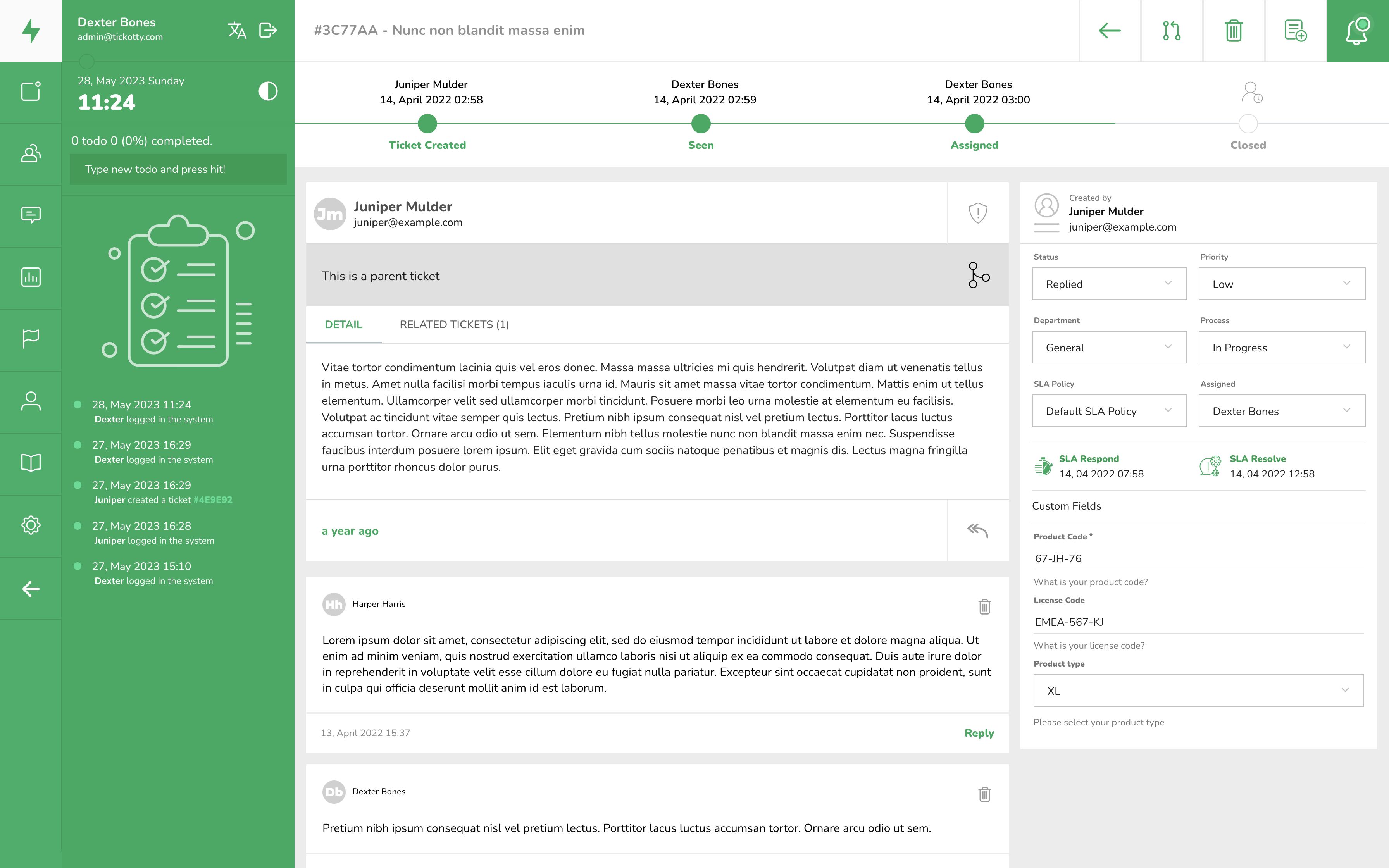 - Service Level Policy – You & your client can agree on a mutual time about how much time period the requests will be answered or resolved. When you define & assign this parameter to your client, you can see the details of SLA in the support tickets, this data is constantly checked with the cron jobs and a notification is sent for the violated support tickets.