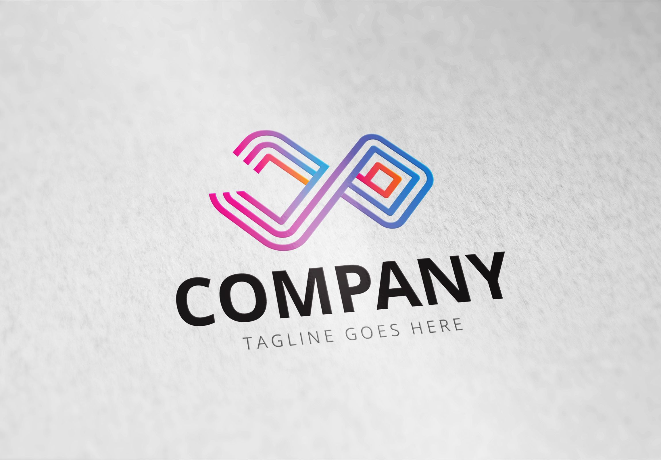 This is unique, beautiful logo design template featuring abstract waves, with geometric rectangle shape, which has rounded corners, and forms sign for infinity. Logo design is in bright, colorful colors, pink, orange and light blue.