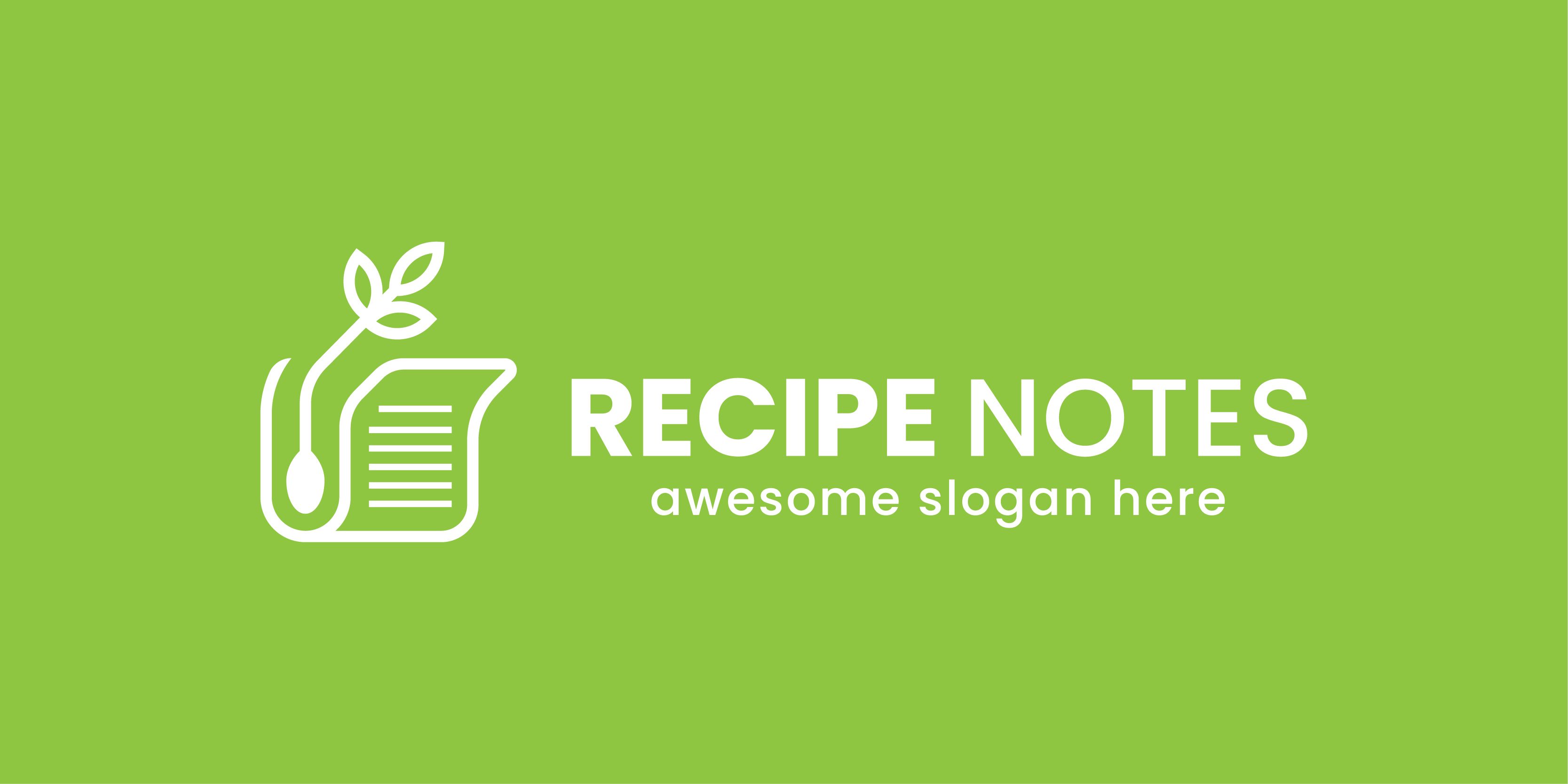 This logo combines food elements with a spoon icon and a recipe icon in the form of paper that re...