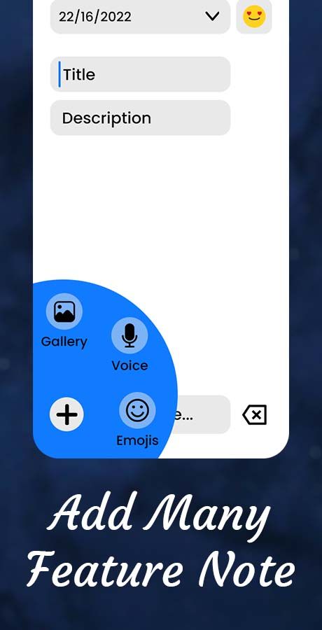 - Add photos from your gallery or add a mood emoji to each entry and express your emotions in a creative way!