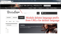 The module removes language prefixes for the default language of your store.Delete Language Prefix PrestaShop module