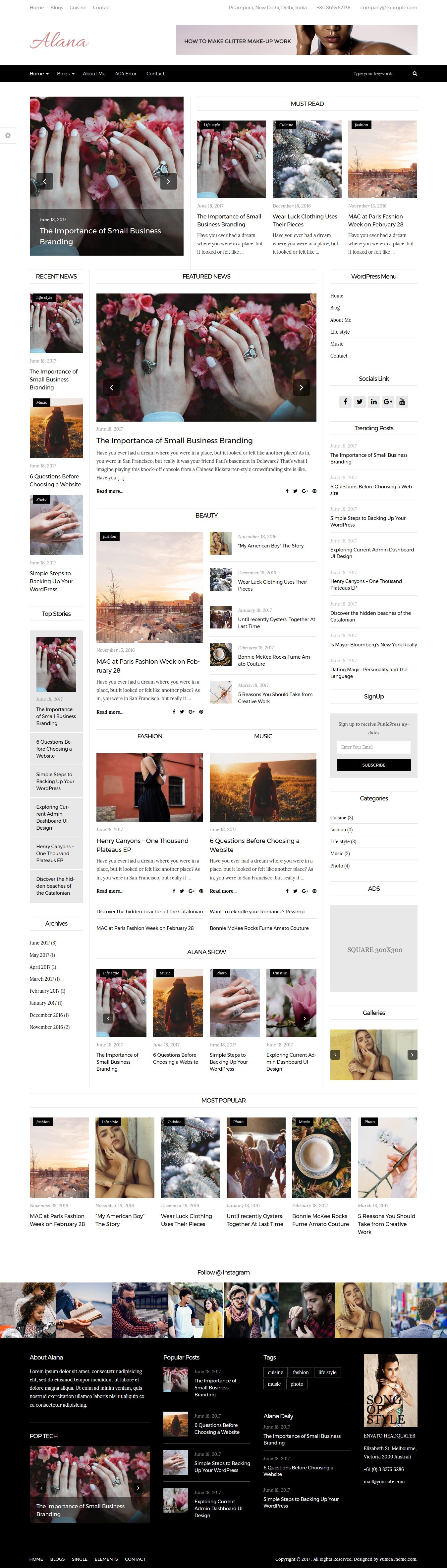 Crafted with bloggers in mind, impress your audience with Alana’s classic, clean, and stately aesthetic. From its stunning slider and promo boxes to the plethora of color options, Alana delights visually and functionally, giving you the power to customize your blog with just a click of the mouse. And if Alana’s numerous features, robust options, and arresting design weren’t enough, rest assured knowing that your theme is backed by Punica’s customer service.