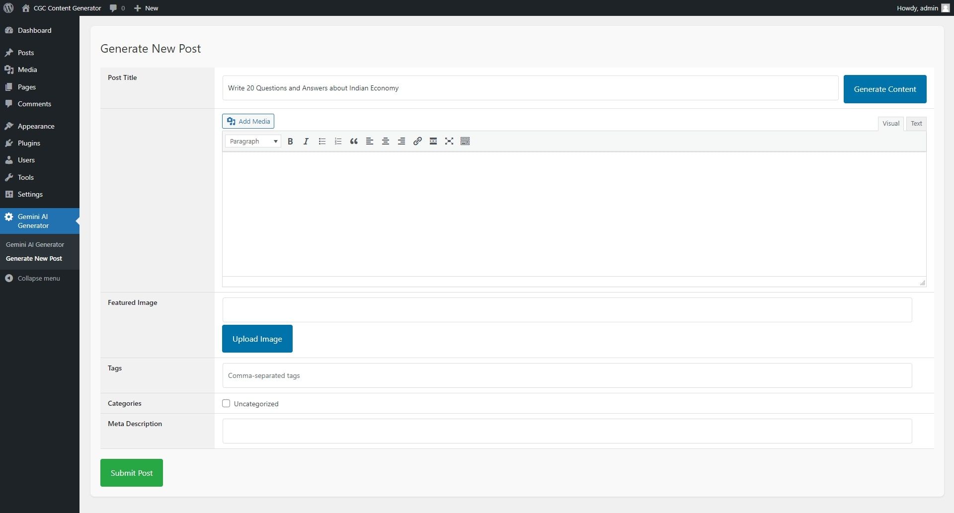 Whether you're running a personal blog or managing multiple websites, content creation can be time-consuming. This plugin allows you to efficiently generate high-quality, SEO-friendly posts that are ready to publish, saving you hours of work. With the additional option of including featured images and ensuring SEO optimization, you’ll be able to create professional posts that attract visitors and engage your audience.