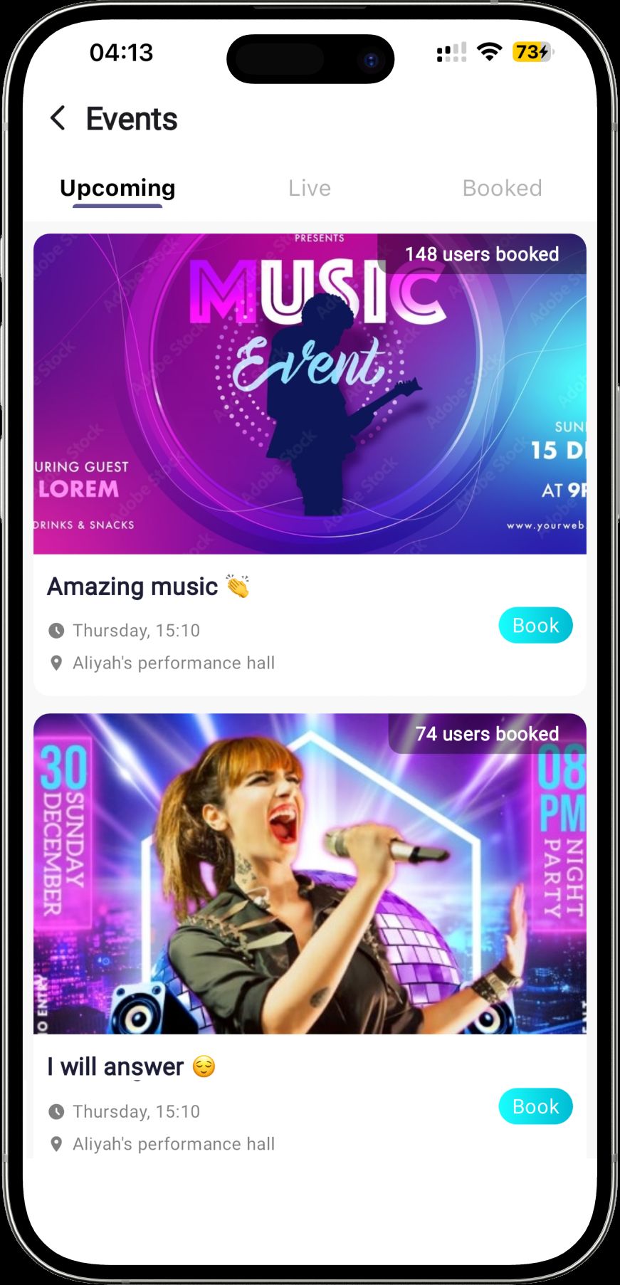Host and join live events, enriching user experience with real-time engagement and dynamic content.
